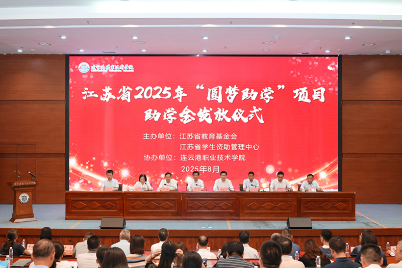 8月28日,由江苏省教育基金会、江苏省学生资助管理中心举办的省2025年“圆梦助学”项目助学金发放仪式在我校图书馆报告厅举行。省教育厅副厅长吴昊、连云港市政府副市长张家炯、省教育基金会理事长张兆臣、连云港市教育局长王修杰、省学生资助中心主任刘振华、二级调研员袁旭元和我校党委书记刘江船等领导出席仪式。
