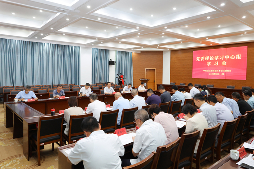 9月11日下午,我校党委理论学习中心组召开专题学习会,深入学习领会习近平总书记关于加强党的作风建设的重要论述和习近平经济思想。校党委书记刘江船主持会议并讲话。党委副书记、校长骆汝九,党委副书记叶如田,副校长汪建明、张永锡、张萍出席会议,各党总支(直属党支部)书记,各院部、各部门主要负责人参加会议。