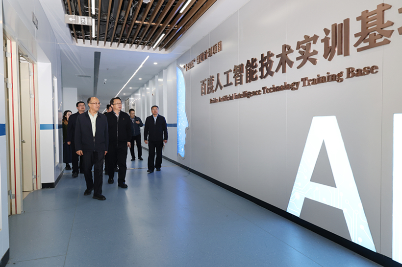 王志华一行还参观了我校“十四五”教育强国推进工程基础设施建设项目——“数智赋能”石油化工产业链虚拟仿真实训基地和百度人工智能技术实训基地,对我校办学条件、校园环境等给予了高度赞赏。