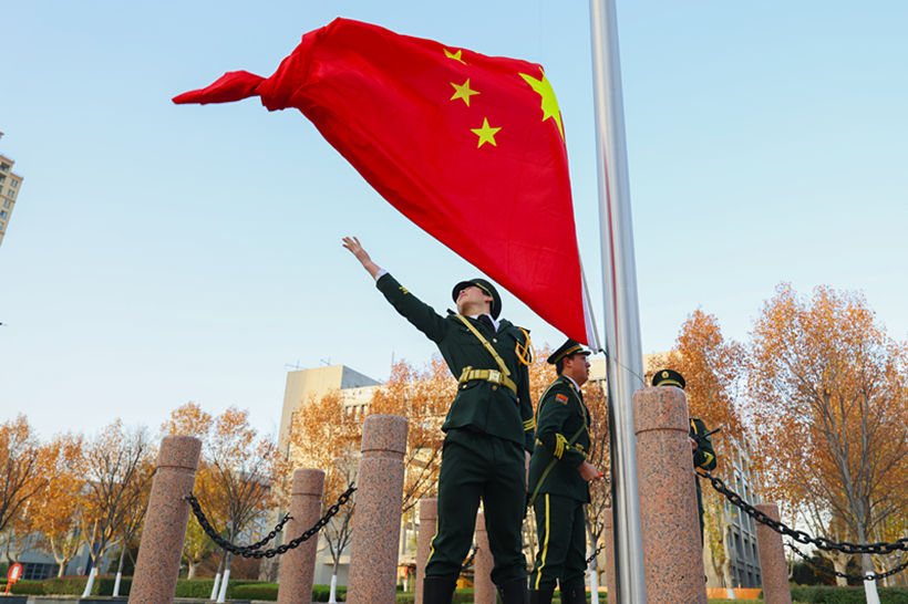为进一步弘扬爱国主义精神,以奋进之志凝聚青春力量,12月1日清晨,我校于图书馆南广场举行“青春笃行,强国有我”主题升旗仪式。校领导,机关中层干部、艺术设计学院、数字商务学院的600余名师生代表参加了仪式,仪式由艺术设计学院党总支书记王少勇主持。