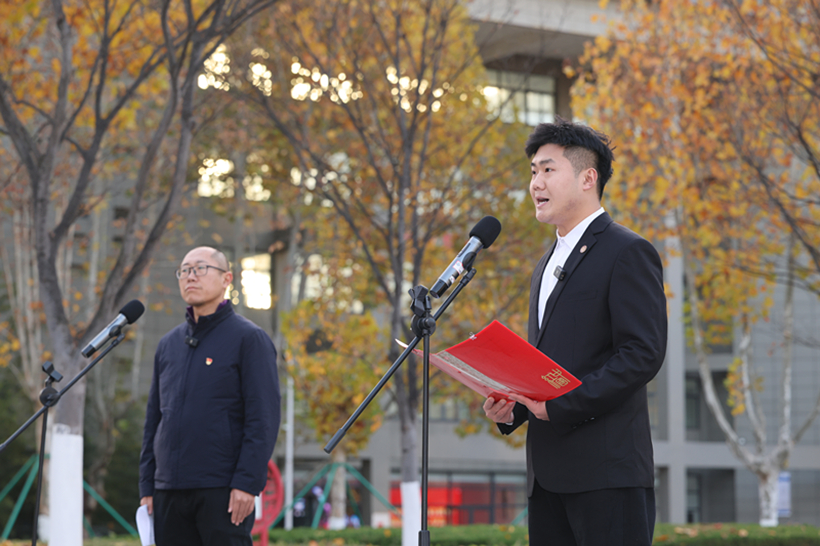 艺术设计学院室内艺术设计233班代珂同学作国旗下讲话,他与同学们共勉,新时代青年肩负重大使命,不仅要增强本领,将理论与实践紧密结合,做到“德才兼备,知行合一”,更要将个人理想融入国家事业,把爱国情转化为报国行,以青春之我、奋斗之我、团结之我,书写“教育强国、职教可为”的时代答卷。