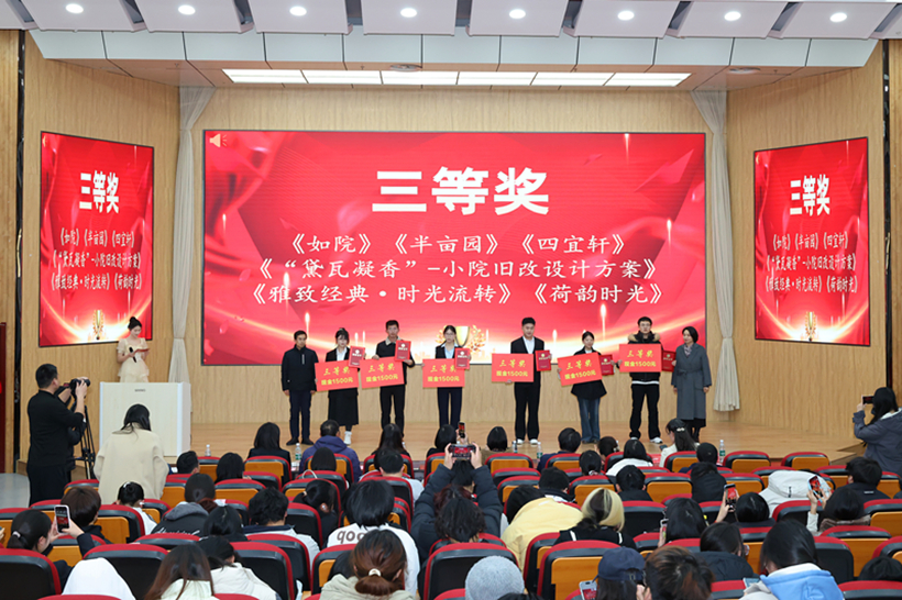经过激烈角逐,我校艺术设计学院薛黎静老师负责的《“隐居”-小院旧改设计方案》荣获一等奖、宗丹丹老师负责的《四季流转·邻里共生》荣获二等奖、薛黎静老师负责的《“黛瓦凝香”-小院旧改设计方案》与宗丹丹老师负责的《雅致经典·时光流转》荣获三等奖。江苏华新城市规划市政设计研究院有限公司园林设计所副所长、高级工程师胡涛作为主评委对赛事价值与选手表现给予高度评价,也为持续优化方案提出了宝贵建议,期待优秀方案在更多庭院落地生根,让“美丽庭院”真正成为惠民利民的“幸福庭院”。