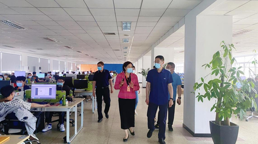 在江苏天马网络科技集团党委书记陈允霞等领导陪同下,刘江船书记一行参观了天马集团总部幸运叶子、Interspot等多个事业部生产运营现场。陈允霞就天马企业的业务领域、发展理念、经营模式以及人才需求等方面情况作了介绍。