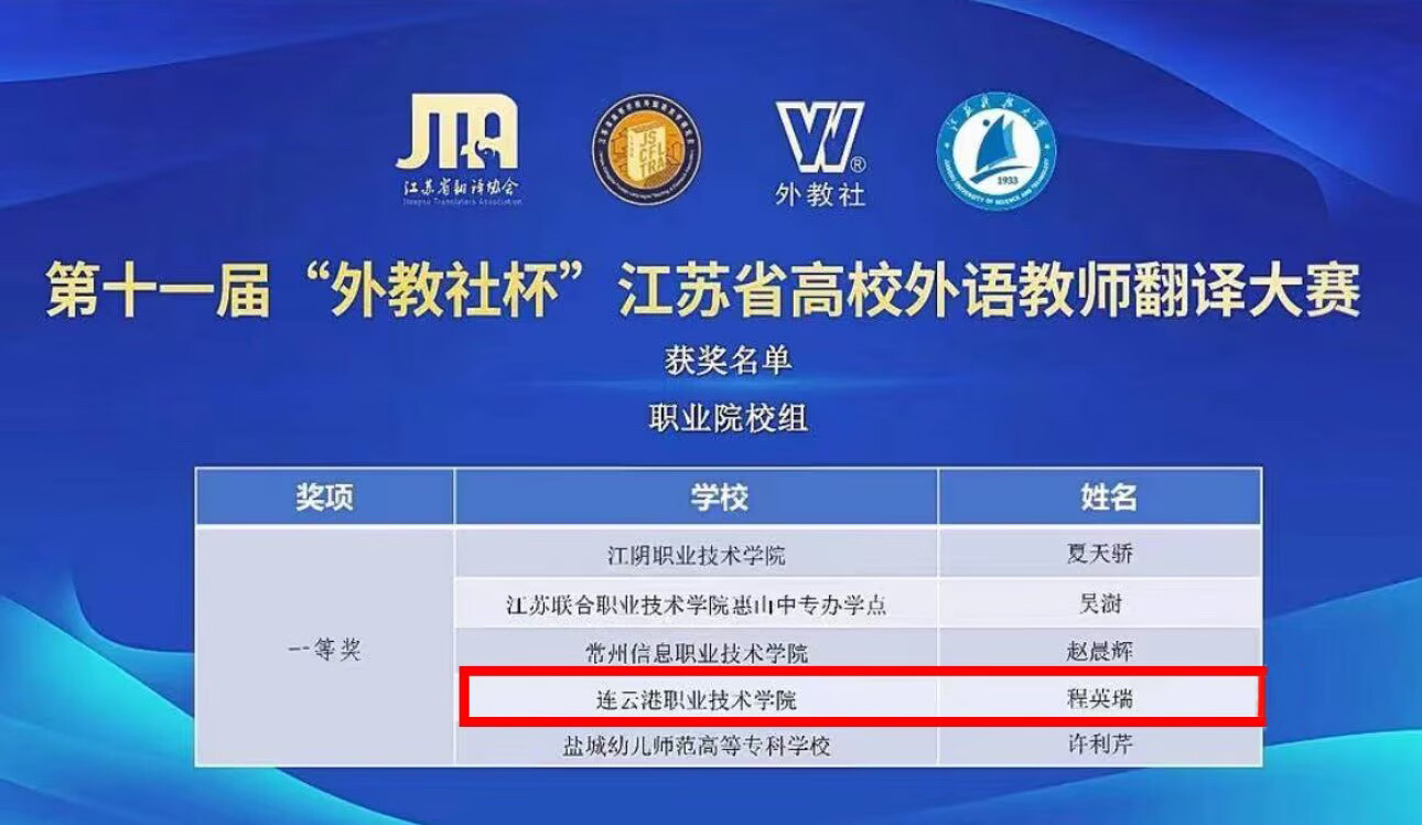 2025第十一届“外教社杯”江苏省高校外语教师翻译大赛于10月12日落下帷幕。我部门青年教师程英瑞凭借扎实的语言功底、精湛的翻译技巧以及对文化内涵的深刻理解,从众多参赛选手中脱颖而出,一举斩获大赛一等奖,为学校赢得了荣誉,为部门挣得了光彩,实现了我校教师在此项赛事上的突破。