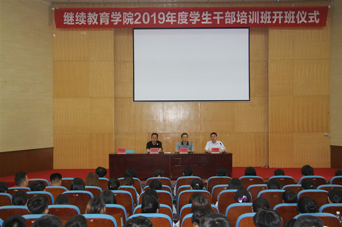 6月10日下午继续教育学院在校文化活动中心报告厅举办了2019年度学生干部培训班开班仪式,党支部书记汪海洋、院长赵子昂、副书记、副院长武选民、全体班主任及100余名学生干部参加了本次开班仪式,会议由副书记武选民主持。