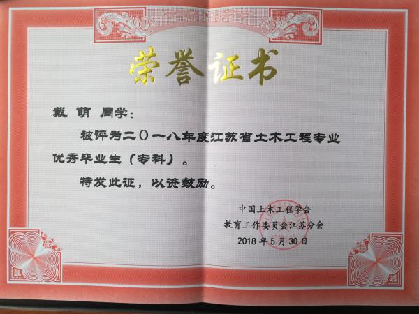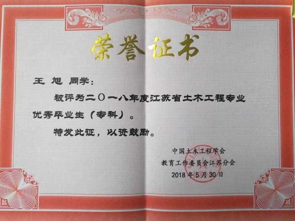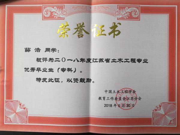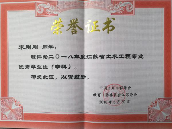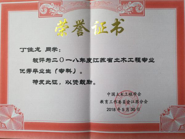 在日前结束的2018年度江苏省土木工程优秀毕业生评选工作中,我院丁佳龙、王旭、宋刚刚、戴萌、薛浩等五位同学获得2018年度江苏省土木工程优秀毕业生称号。