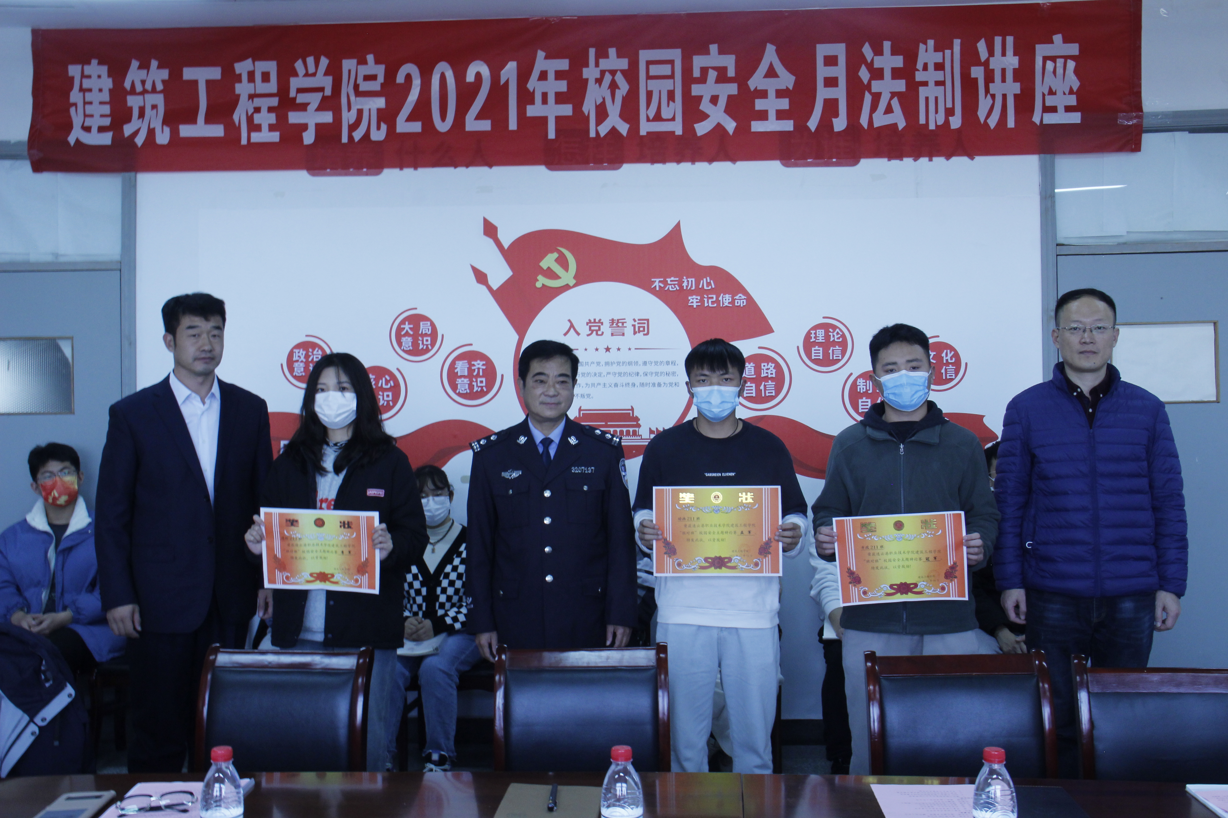 报告会上,与会领导与嘉宾对建筑工程学院2021年班对班校园安全主题辩论赛中获奖的班级进行了颁奖。