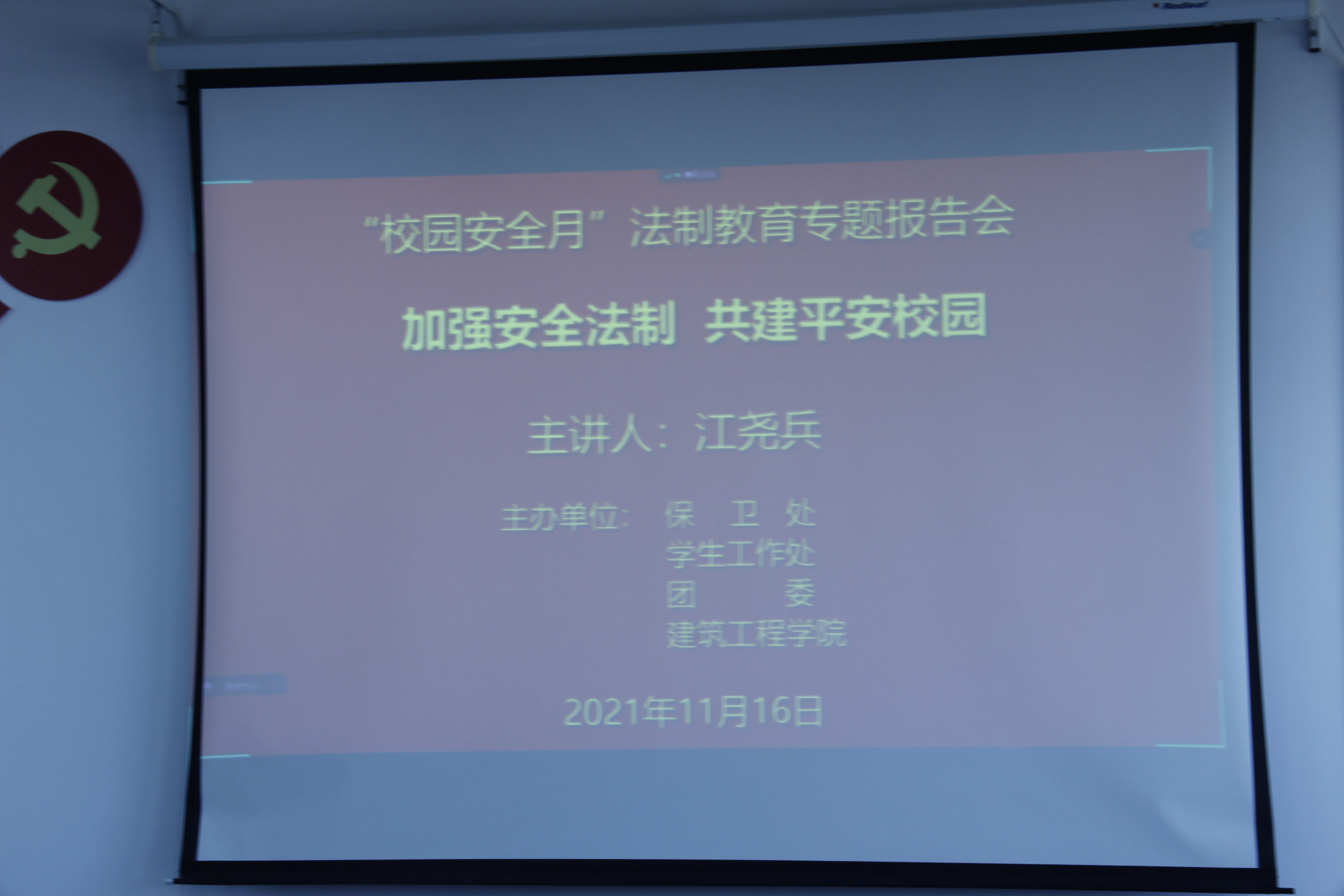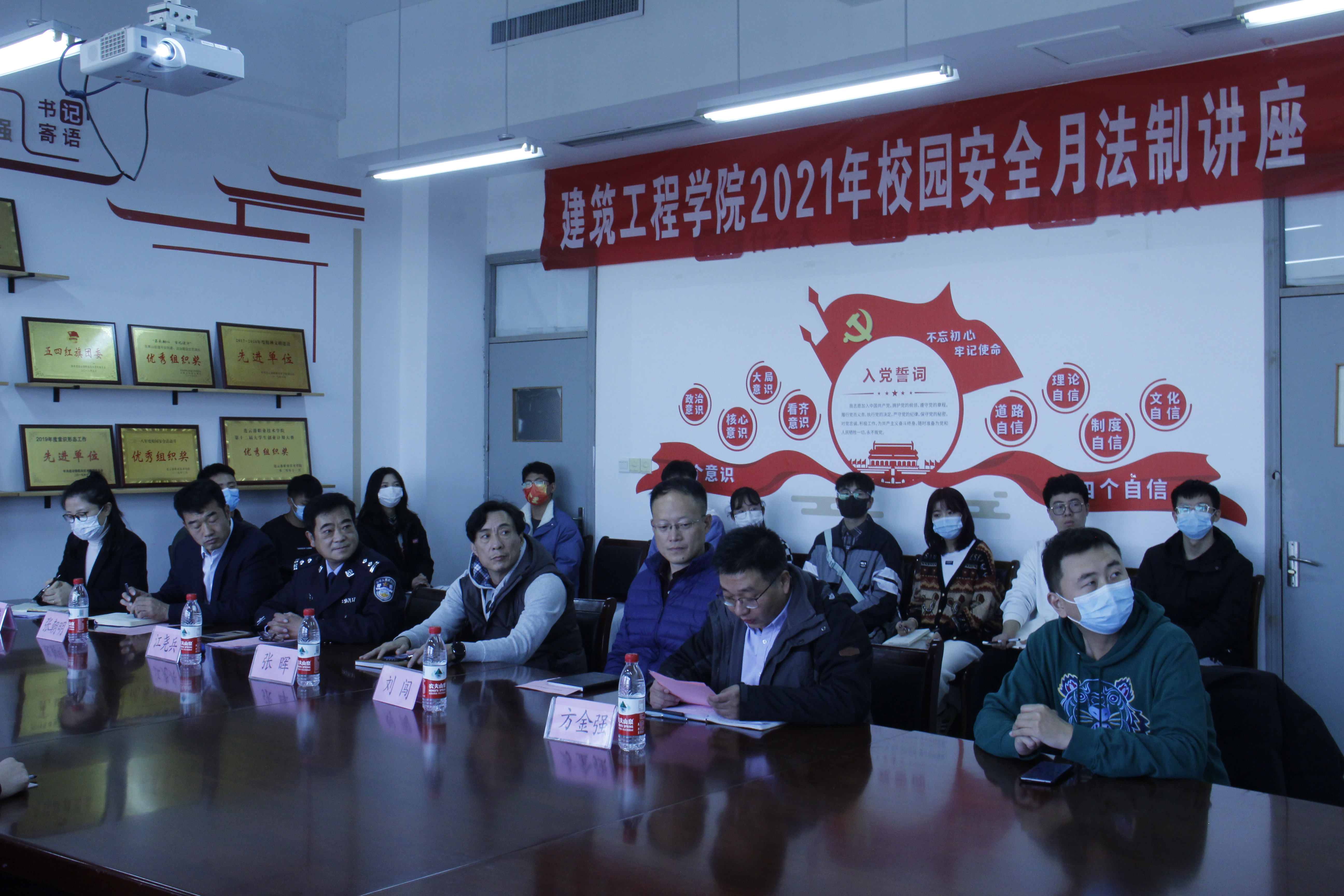 为提高师生安全防范意识和自我保护能力,切实增强学生的法制观念,营造文明、平安、和谐的校园育人环境,11月16日下午,建筑工程学院在博远楼526会议室举办校园安全月法制教育专题报告会。保卫处处长、团委书记刘闯、建筑工程学院党总支书记张晖和新疆内派老师张朝明出席报告会,报告会由建筑工程学院党总支副书记、副院长方金强主持。本次报告会采用线上+线下的形式,通过腾讯会议直播,全院师生同步在线观看学习。