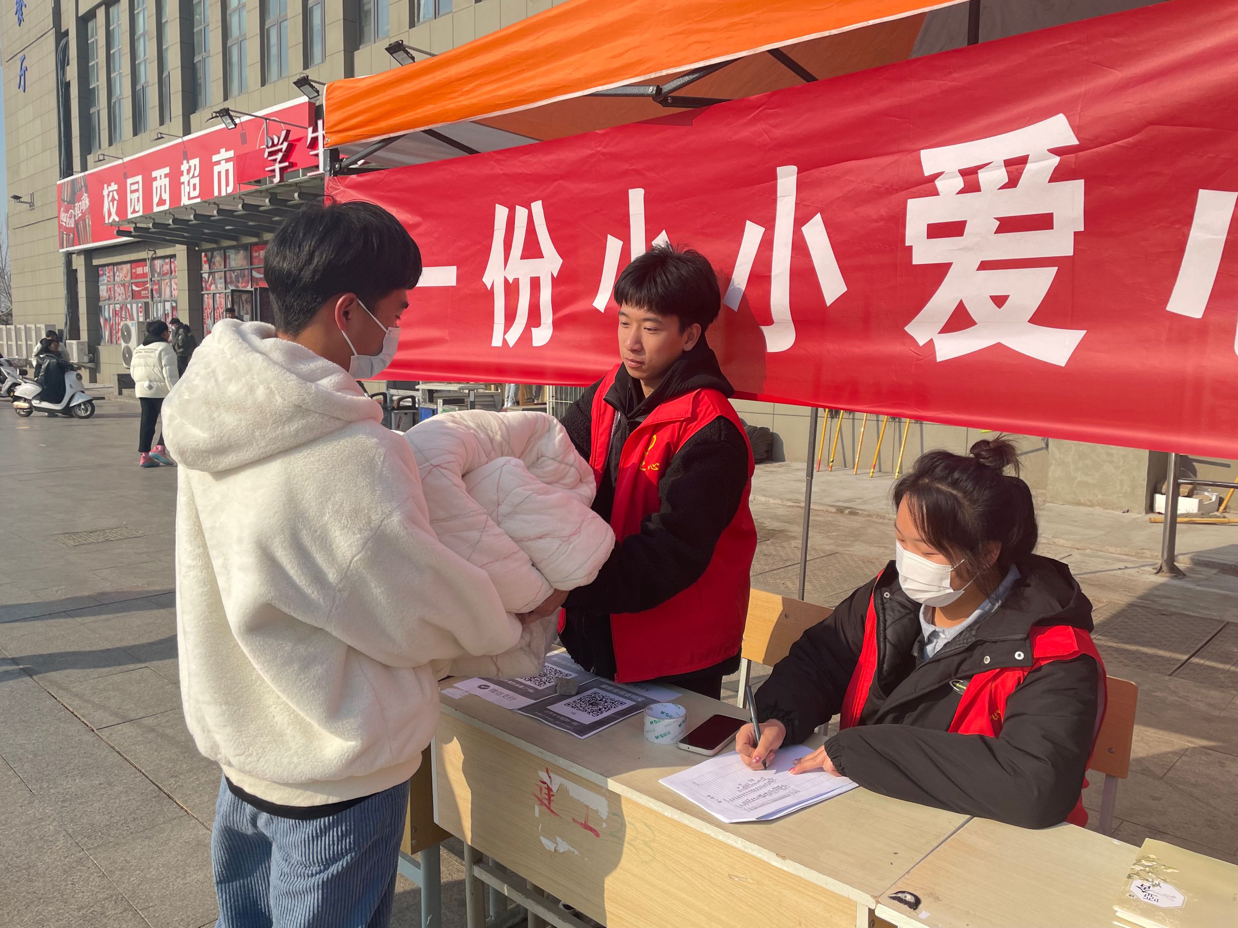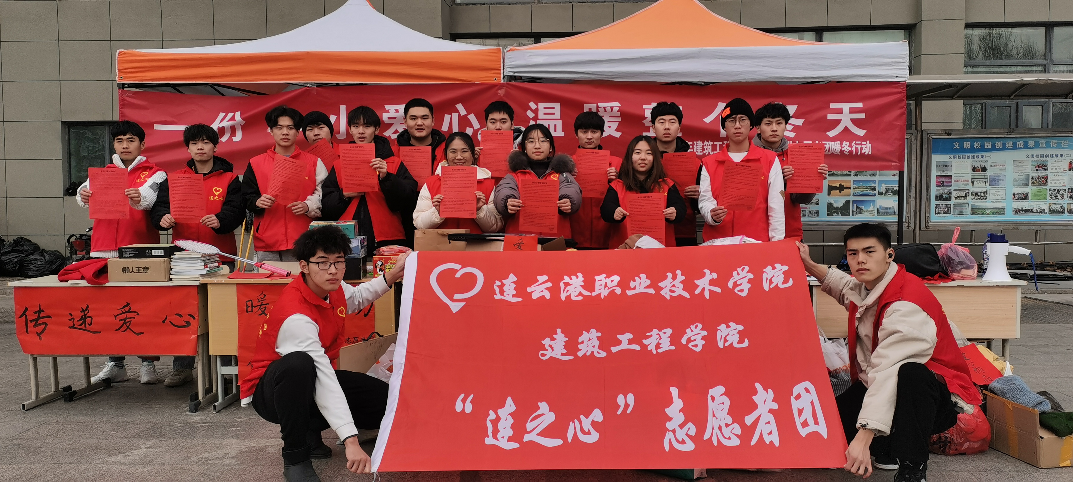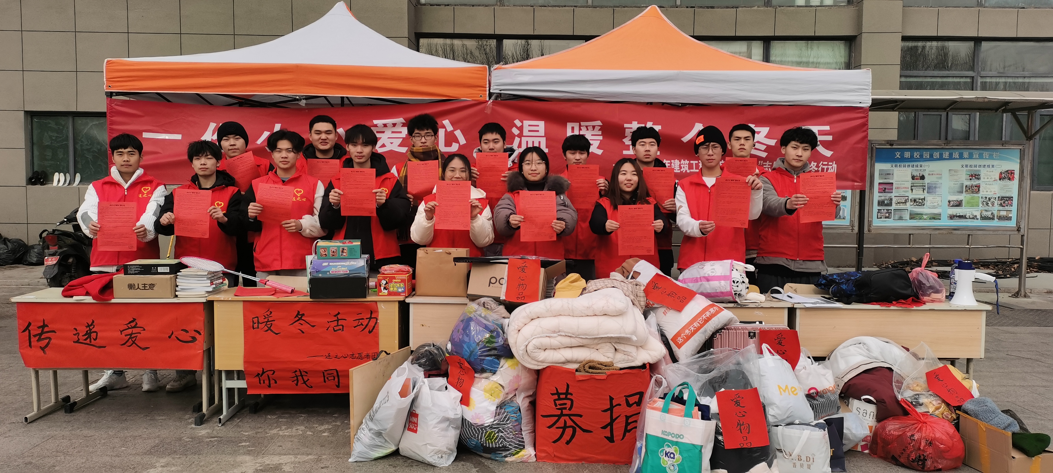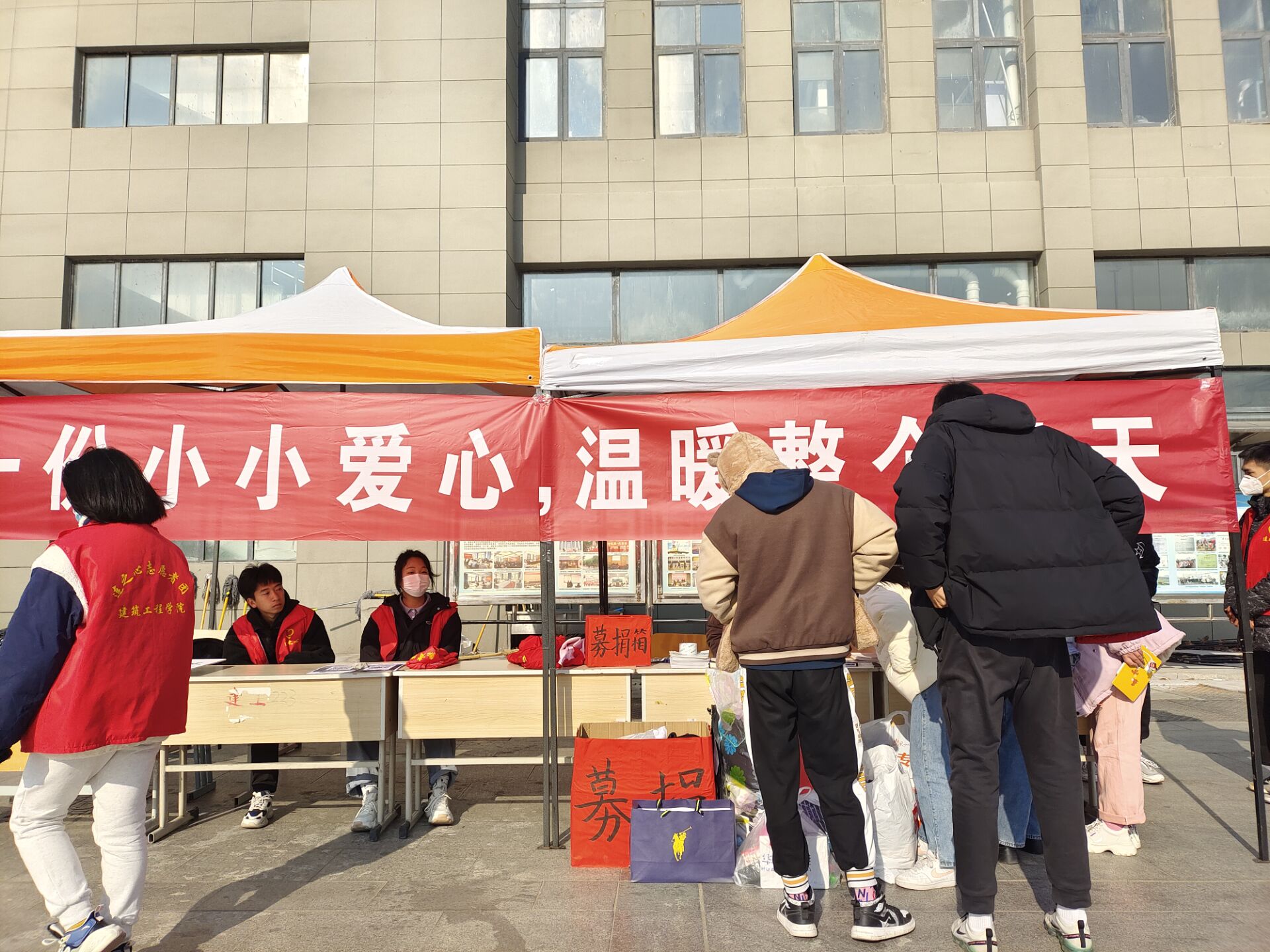 为深入贯彻党的十九届六中全会精神,深化落实“我为群众办实事”实践活动,弘扬“奉献、友爱、互助、进步”的志愿服务精神,2021年12月29日上午,建筑工程学院“连之心”志愿者团在西食堂广场开展“暖冬行动”爱心倡议募捐活动。