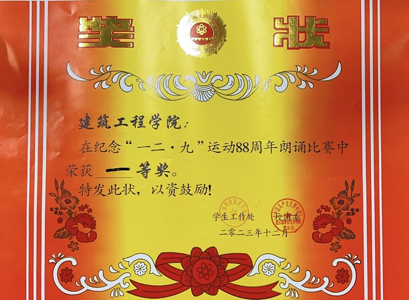 为纪念“一二·九”运动88周年,12月8日我校在体育馆成功举办了主题为“忆往昔峥嵘岁月,诵今朝青春年华”朗诵比赛。在这一充满历史意义的活动中,建筑工程学院的参赛队伍以他们深情而富有力度的表现,赢得了评委和观众的阵阵掌声,最终荣获比赛一等奖。