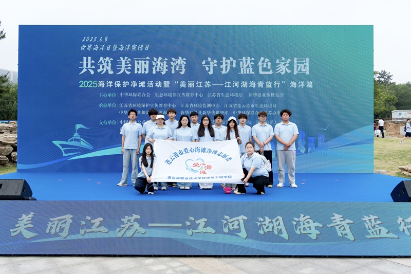 6月8日,2025海洋保护净滩暨“美丽江苏-江河湖海青蓝行”海洋篇活动启动仪式,于连云港在海一方公园正式举行。本次活动由中华环保联合会、生态环境部宣传教育中心等单位共同主办。我校建筑工程学院“连之心”志愿者团作为高校志愿服务代表受邀参加,并被授予2025爱心海滩旗帜。