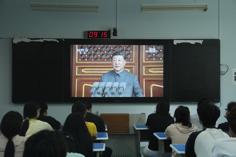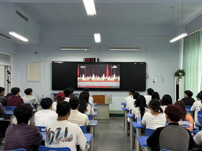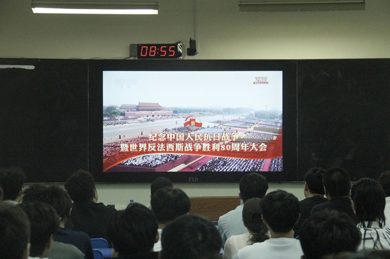 9月3日上午,建筑工程学院组织百余名学生在智慧教室集中观看中国人民抗日战争暨世界反法西斯战争胜利80周年阅兵仪式。在庄严的仪式中,同学们重温民族记忆,深刻感悟伟大抗战精神,接受了一次深刻的爱国主义教育。