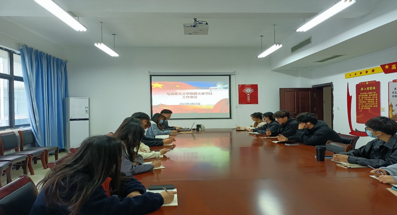 4月23日下午14:00,马克思主义学院“薪火”学习社在厚德楼539室召开第一次全体工作会议,会议由社团指导老师丁增锋主持,“薪火学习社”全体成员参加。