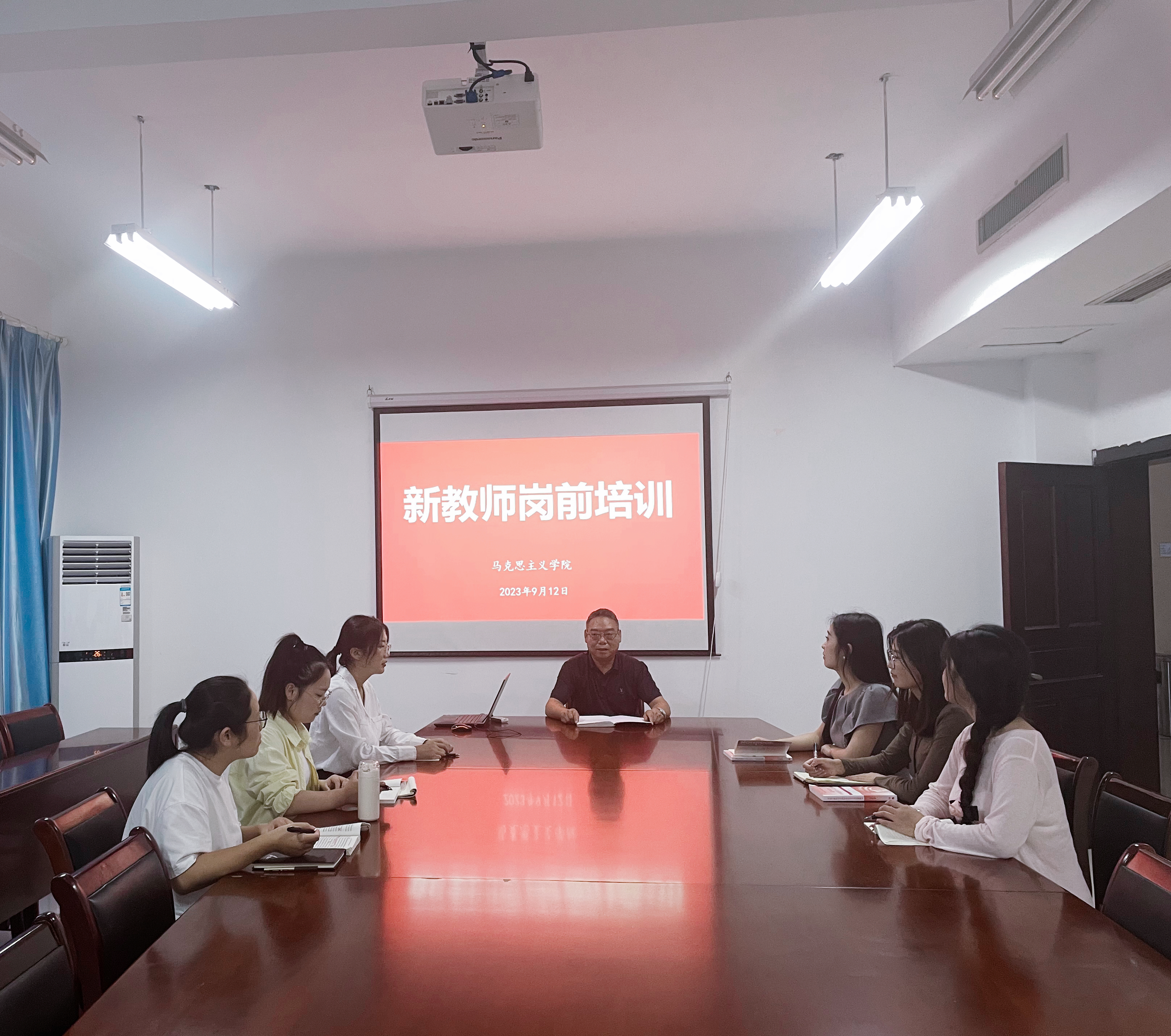 为加强教师队伍建设,帮助新入职教师尽快实现角色转换,快速融入学院建设与发展,于2023年9月12日,马克思主义学院在厚德楼539会议室召开新教师岗前培训。本次培训由马克思主义学院副院长陈金生主持,6名新入职教师参加培训。
