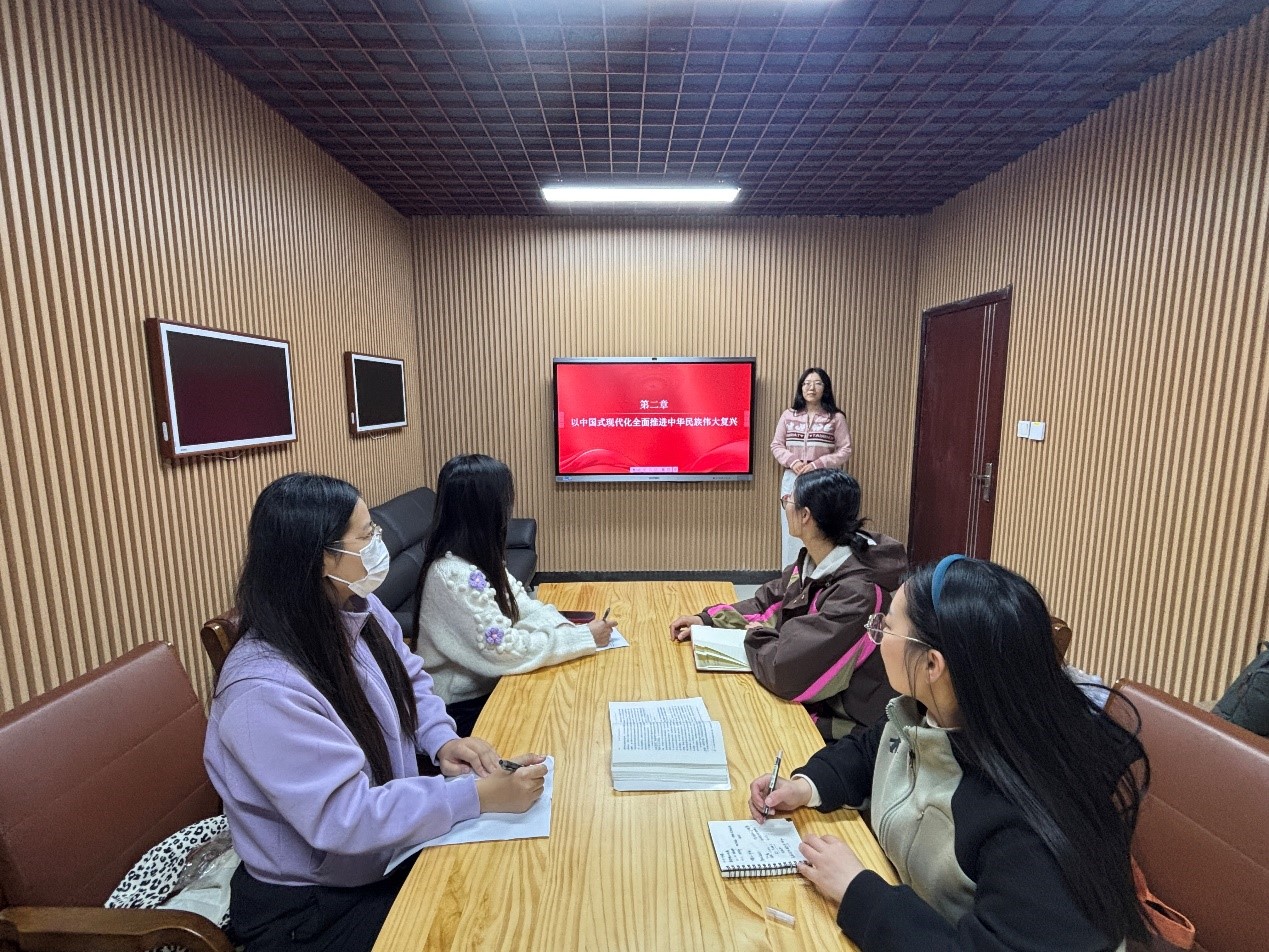 为进一步推动习近平新时代中国特色社会主义思想进教材、进课堂、进头脑,更好落实立德树人根本任务,10月21日,习近平新时代中国特色社会主义思想概论教研室召开集体备课会,教研室主任徐怀志主持会议,教研室老师吕常媛围绕“以中国式现代化全面推进中华民族伟大复兴”进行专题说课。