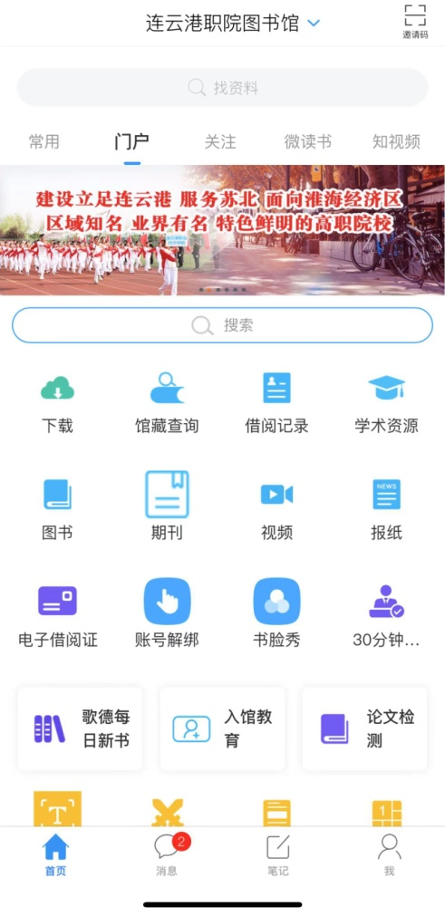 在首页右上角点击“邀请码”并输入所在单位邀请码“lygzytsg”,点击“确定”进入单位首页,即可使用学习通图书馆部分的全部资源模块。点击“书脸秀”活动即可参与,如图4所示: