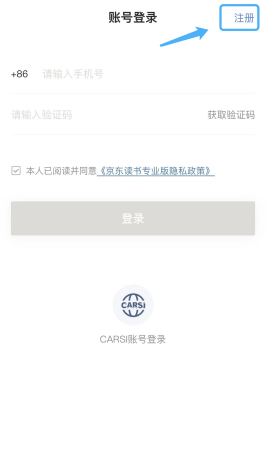 首次访问的读者需要连接校园网WiFi后进入京东读书专业版平台,点击【注册】--选择【本人所在学校】--连接校园网WiFi完成身份认证,根据页面提示输入手机号、姓名等信息完成注册。