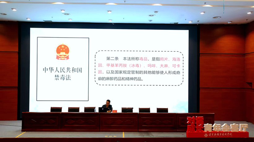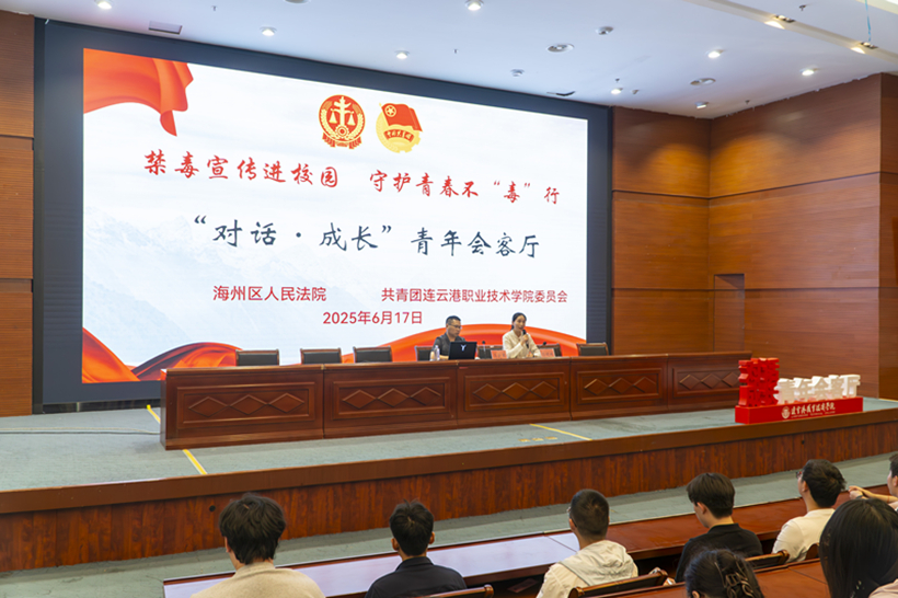 为深入贯彻落实习近平总书记关于禁毒工作的重要指示精神,切实增强学生识毒、防毒、拒毒意识,在第38个国际禁毒日来临之际,6月17日下午,我校团委在图书馆报告厅举办“让青春不‘毒’行”主题禁毒普法讲座,同时拉开“对话·成长”青年会客厅第一期活动的序幕。本次活动特邀海州区人民法院刑事审判庭副庭长马赵军法官担任主讲。校团委所有人员、海州区人民法院相关工作人员以及160余名学生代表共同聆听了讲座。