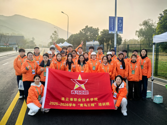 为深化青年马克思主义者培养工程实践育人内涵,推动理论学习与社会实践深度融合,11月9日,我校精心组织2025 - 2026学年“青马学员”、青年学生代表,以及校团委老师和各二级学院分团委书记,共计288名志愿者助力2025连云港・连岛半程马拉松赛圆满举办。在这场万众瞩目的赛事中,师生志愿者们以饱满的热情、专业的素养和无私的奉献,圆满完成志愿服务任务,为赛事注入蓬勃的青春力量。