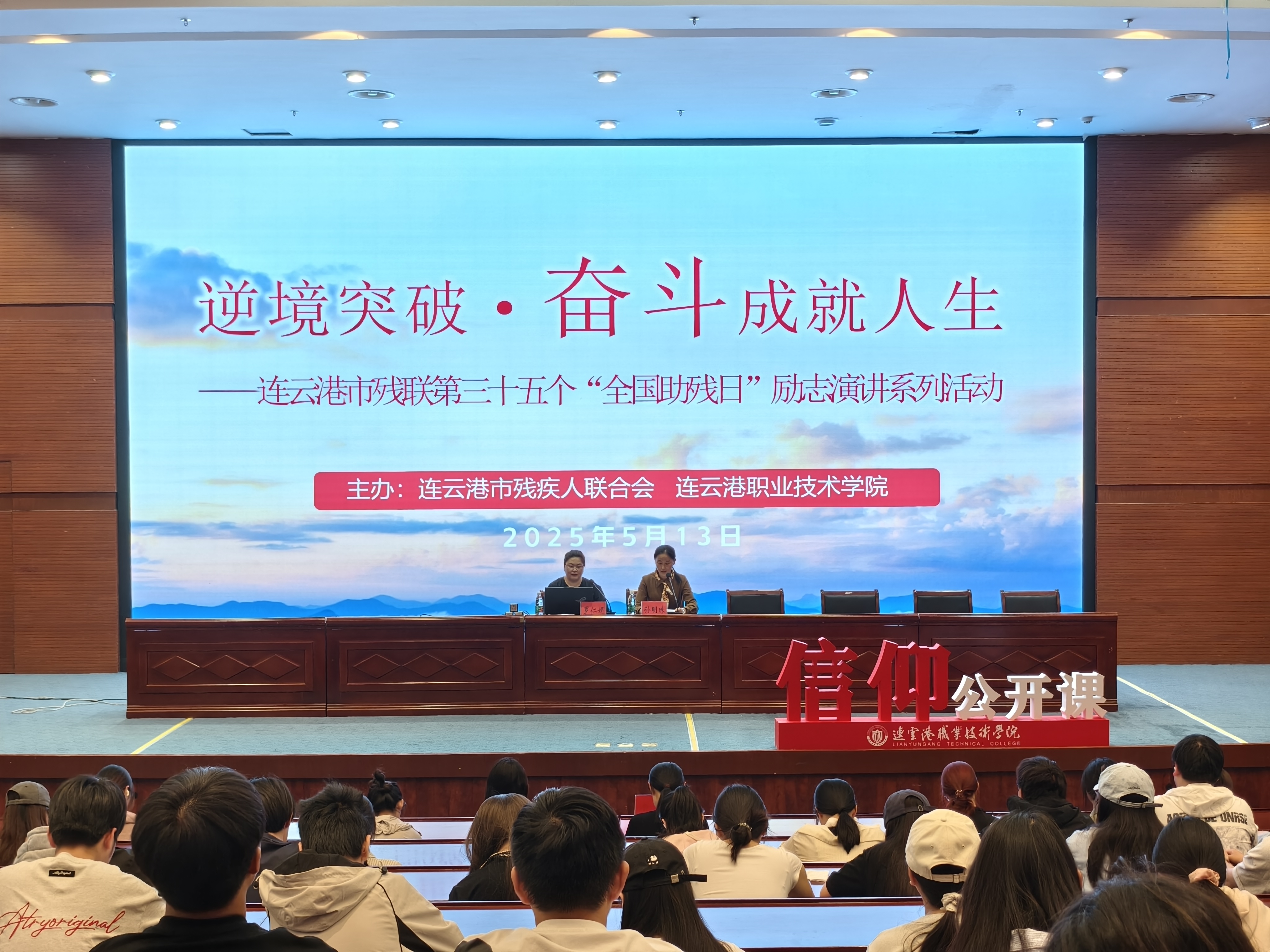 在第35个“全国助残日”即将到来之际,为传递爱心、弘扬扶残助残美德,积极引领广大团员青年为残疾人群体提供切实的帮助与关爱,5月13日下午,校团委携手连云港市残疾人联合会在图书馆报告厅开展“逆境突破·奋斗成就人生”主题信仰公开课。活动特邀连云区四叶草助残服务中心党支部书记、理事长罗仁娟担任主讲,以《追光者的人生导航:从弃婴到冠军的成长密码》为题,为200余名师生带来一场感人至深、催人奋进的励志分享。活动由校团委书记孙明珠主持。