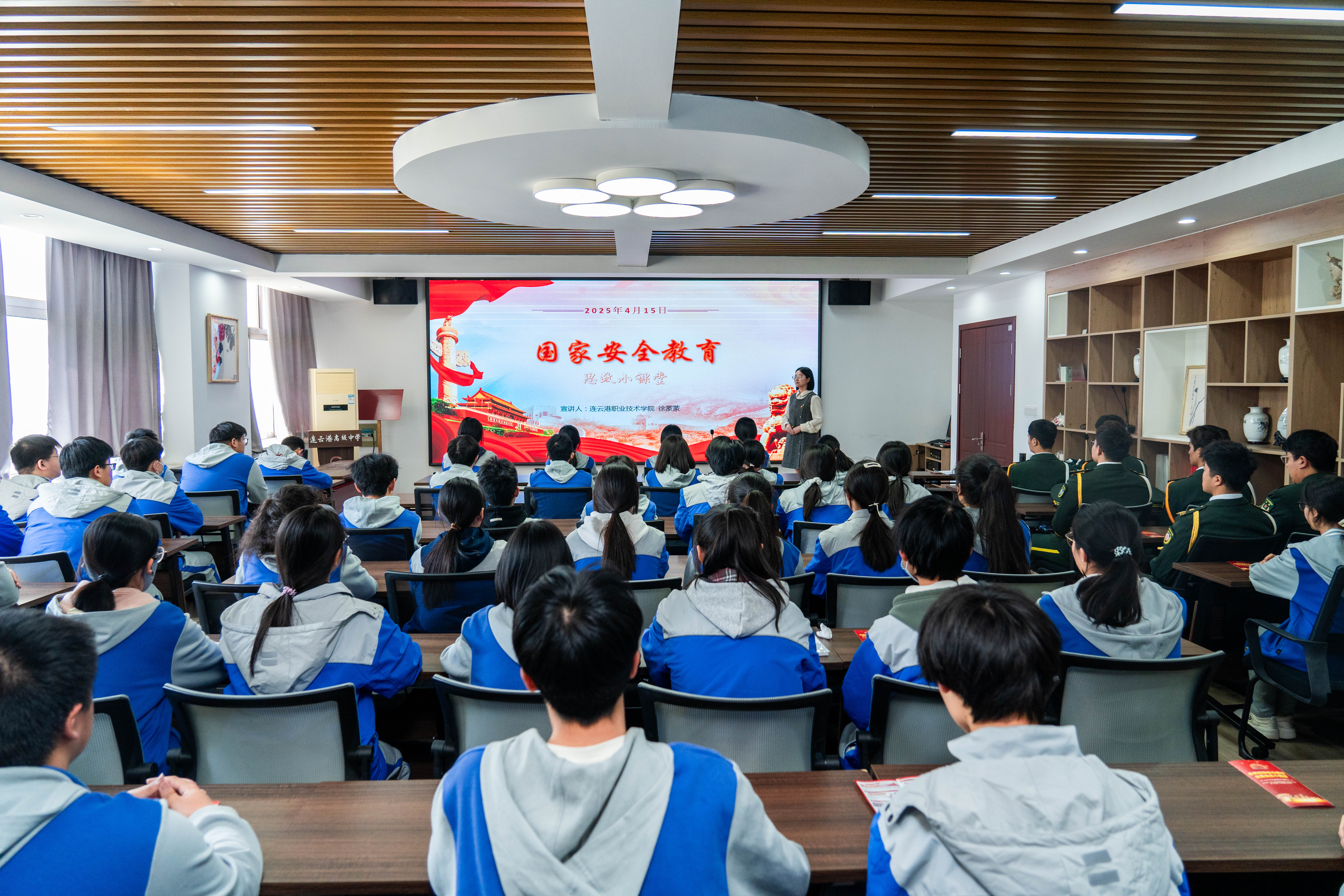 在第十个全民国家安全教育日即将到来之际,为积极响应国家号召,深入学习贯彻习近平总书记关于总体国家安全观的重要论述,进一步提升学生的国家安全意识与自我防护能力,4月14日,我校携手连云港市首批大中小学思政课一体化建设联盟成员单位——连云港高级中学,共同举办了一场别开生面的全民国家安全教育日主题团日活动。校团委书记孙明珠、校团委办公室主任殷铭、马克思主义学院教师徐蒙蒙、“晨光”国旗护卫队21名队员和连云港高级中学2000余名师生参加本次活动。