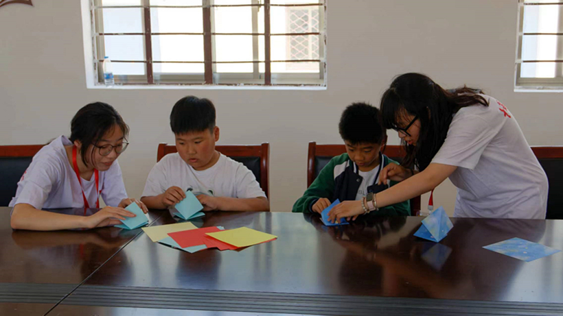 活动伊始,志愿者们便抓住小学生的心理特点,从他们喜欢的游戏开始,和他们一起叠纸和画画,拉近了彼此之间的距离,更鼓励了他们去积极表达自己的想法。活动中小学生们收获了浓浓的爱意和纯真的快乐,通过游戏消除了彼此的陌生感。