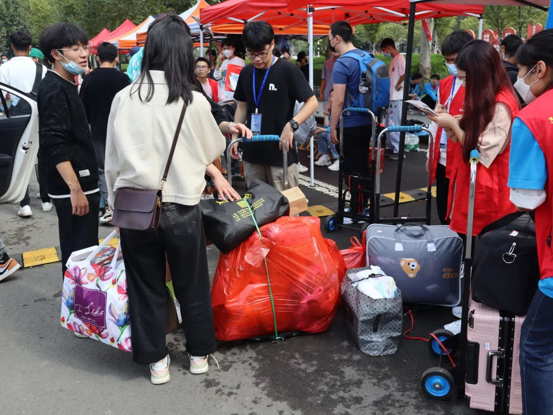 10月8日,学校迎新工作正式启动,历时三天。每天早晨7点,志愿者同学们就已经全部集合完毕,随时准备迎接新生。在风雨和烈日之下,志愿者们依旧没有懈怠,第一时间引导新生签到报到,新生的行李也有志愿者第一时间运回宿舍楼下,整个过程有条不紊。运送行李的志愿者作为整个迎新工作最累的成员毫无怨言,当遇到突发情况的时候,迎新工作人员都可以做到冷静面对、及时处理,并通知老师。在迎新的过程中,也发生了许多感人的事情。网络工程班的一位同学在志愿者帮忙搬完行李之后又原路返回了西门,给志愿者们送上了一杯充满谢意的奶茶,对于志愿者们来说这可能是最好也是最温暖的一杯奶茶。