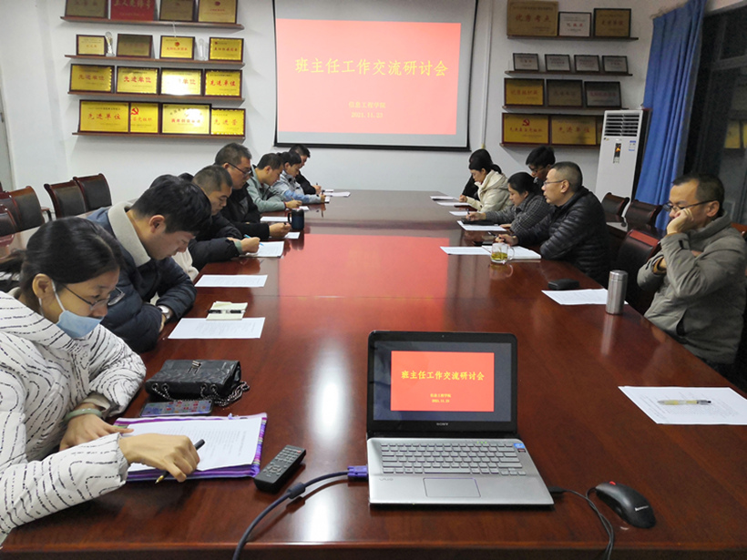 为了进一步加强班主任队伍建设,提升班主任的工作能力, 11月23日下午,信息工程学院在博远楼522会议室召开班主任工作交流研讨会。会议由信息工程学院党总支副书记王卫红主持,所有班主任、辅导员参加。