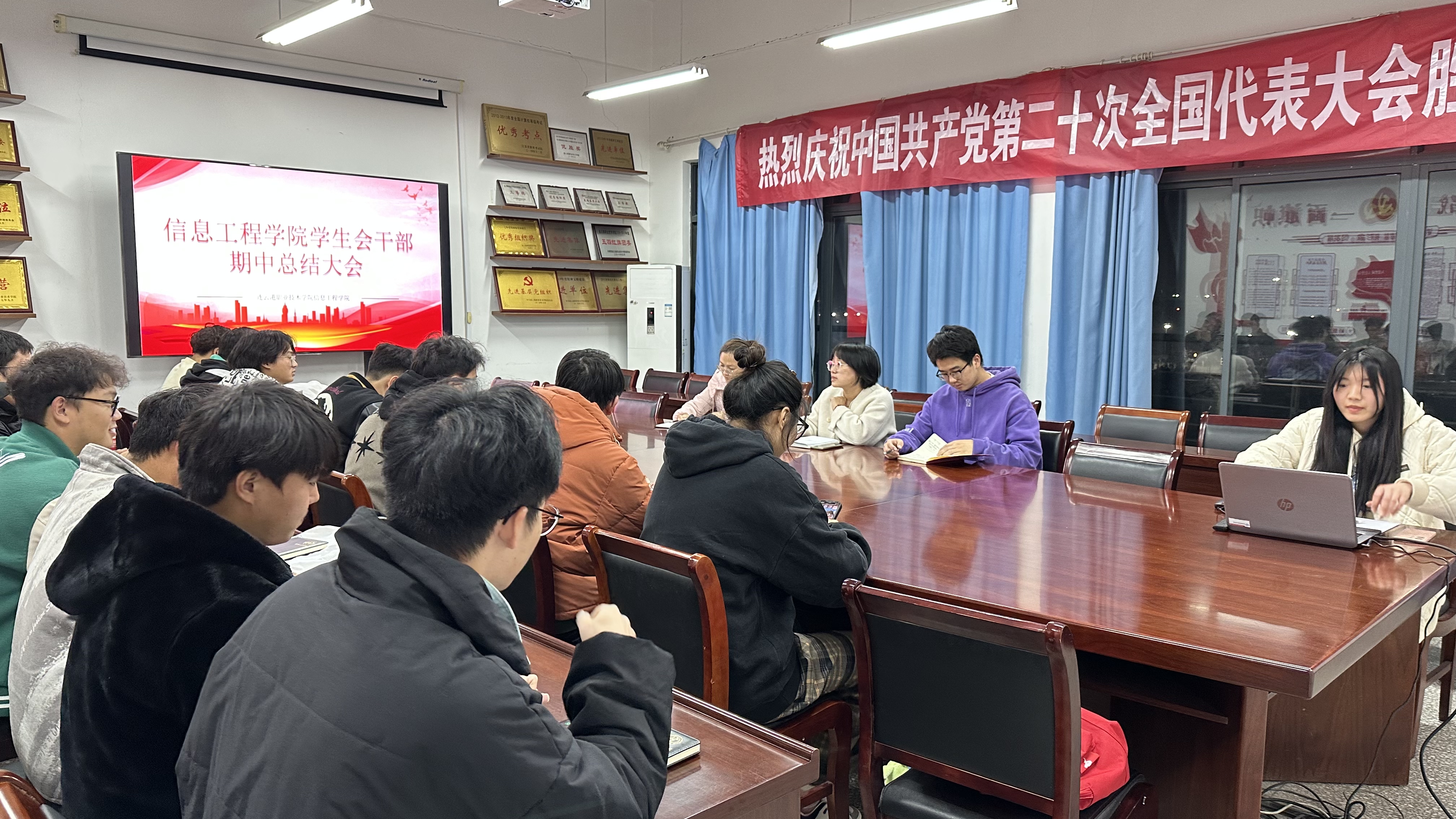 为强化学院学生会队伍建设,充分发挥学生会示范引领作用,11月22日,信息工程学院在博远楼A522会议室开展学生会期中总结大会。信息工程学院党总支副书记杨然、分团委书记朱甜甜、辅导员何宇轩及学生会全体干部出席会议。