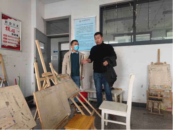 2022年3月3日,艺术与旅游学院副院长邱伟伟带领实训部、各教研室进行学院实验室安全工作初查。邱院长针对各实训室存在的问题与不足并提出整改意见,要求学生技能实训室作品摆放整齐、注重环境卫生;同时指导专业机房进行故障排查与维护,为后期线下授课做好相关准备。