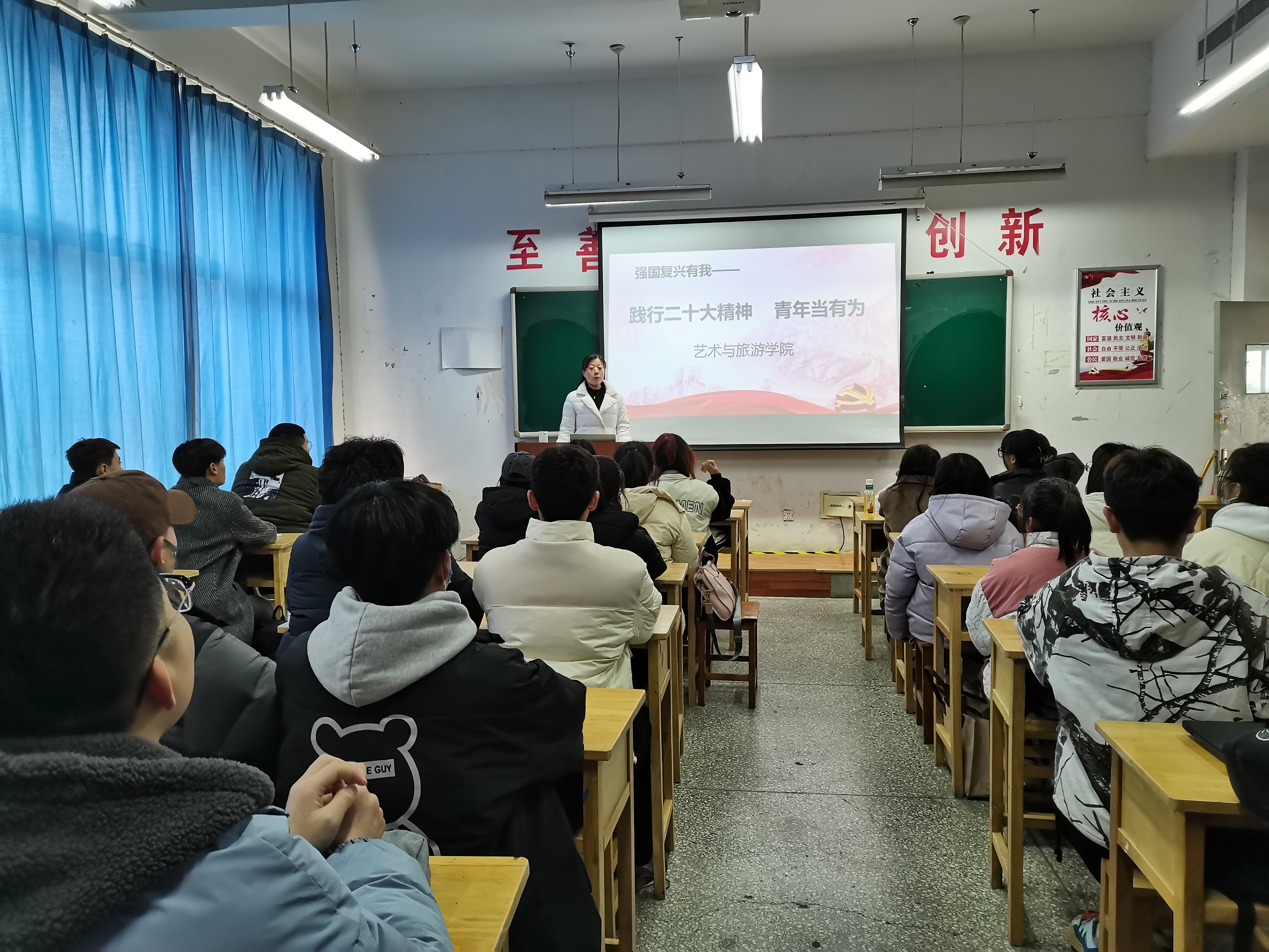 为进一步加强我院学生党员和学生干部二十大精神学习,2月21日下午,艺术与旅游学院党总支、分团委以及关工委联合召开“学习二十大精神 勇担新时代重担”主题学习活动。艺术与旅游学院党总支副书记高云,学院全体辅导员、学生党员和学生干部参加了本次主题学习活动。