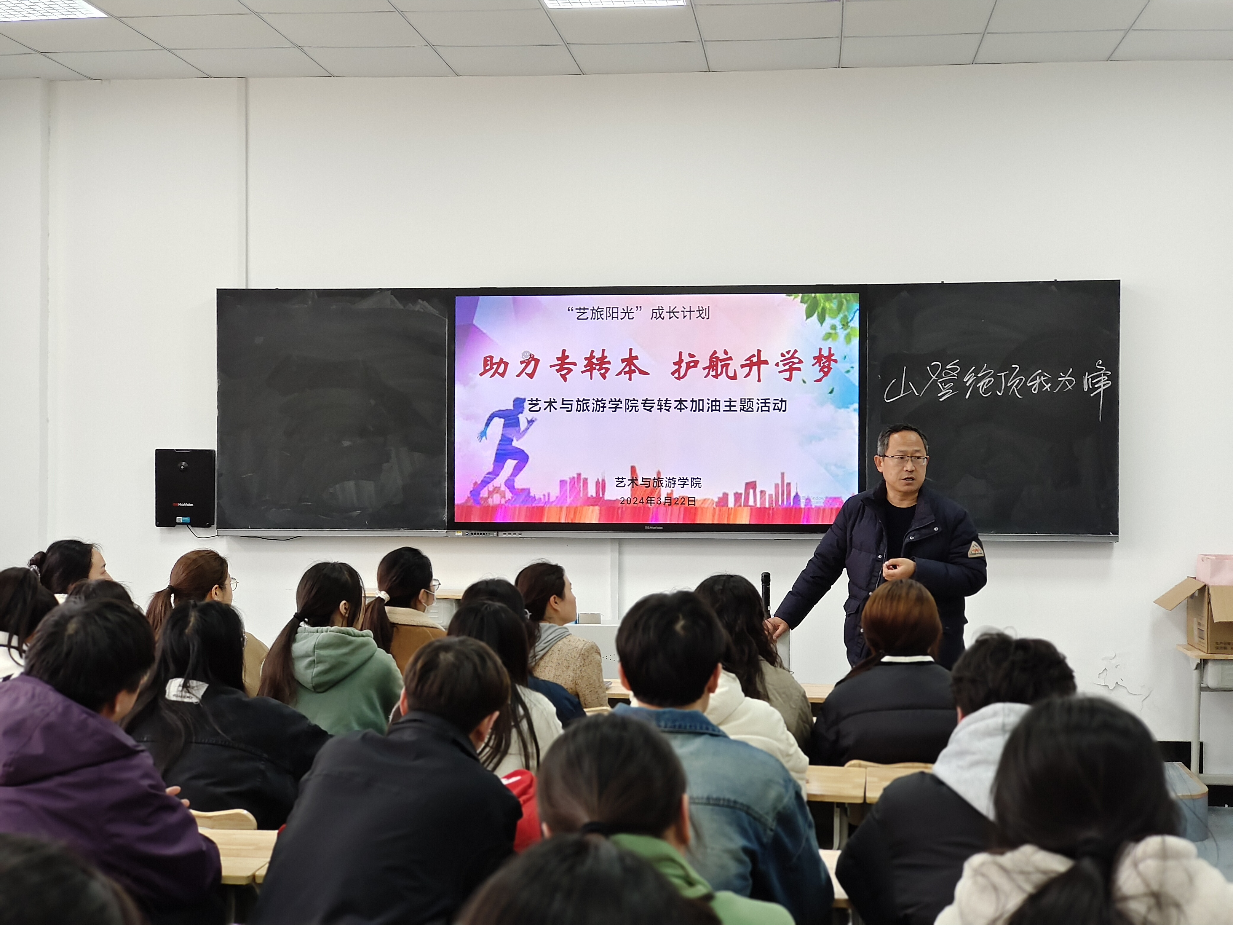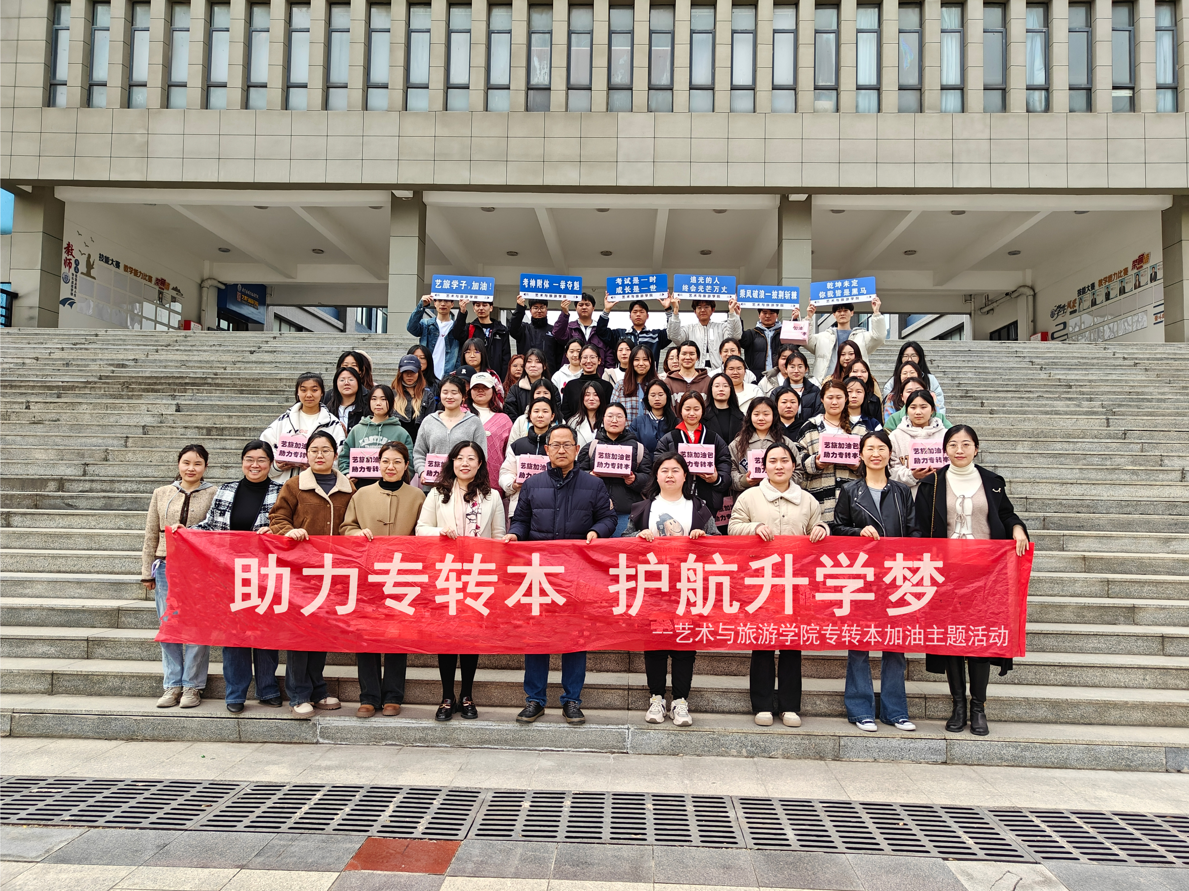 为增强“专转本”学生迎考信心,鼓舞士气,3月22日下午,艺术与旅游学院举办“助力专转本,护航升学梦”活动。艺术与旅游学院院长赵子昂、副书记高云、全体辅导员、毕业班班主任及2024届专转本学生参加本次活动。