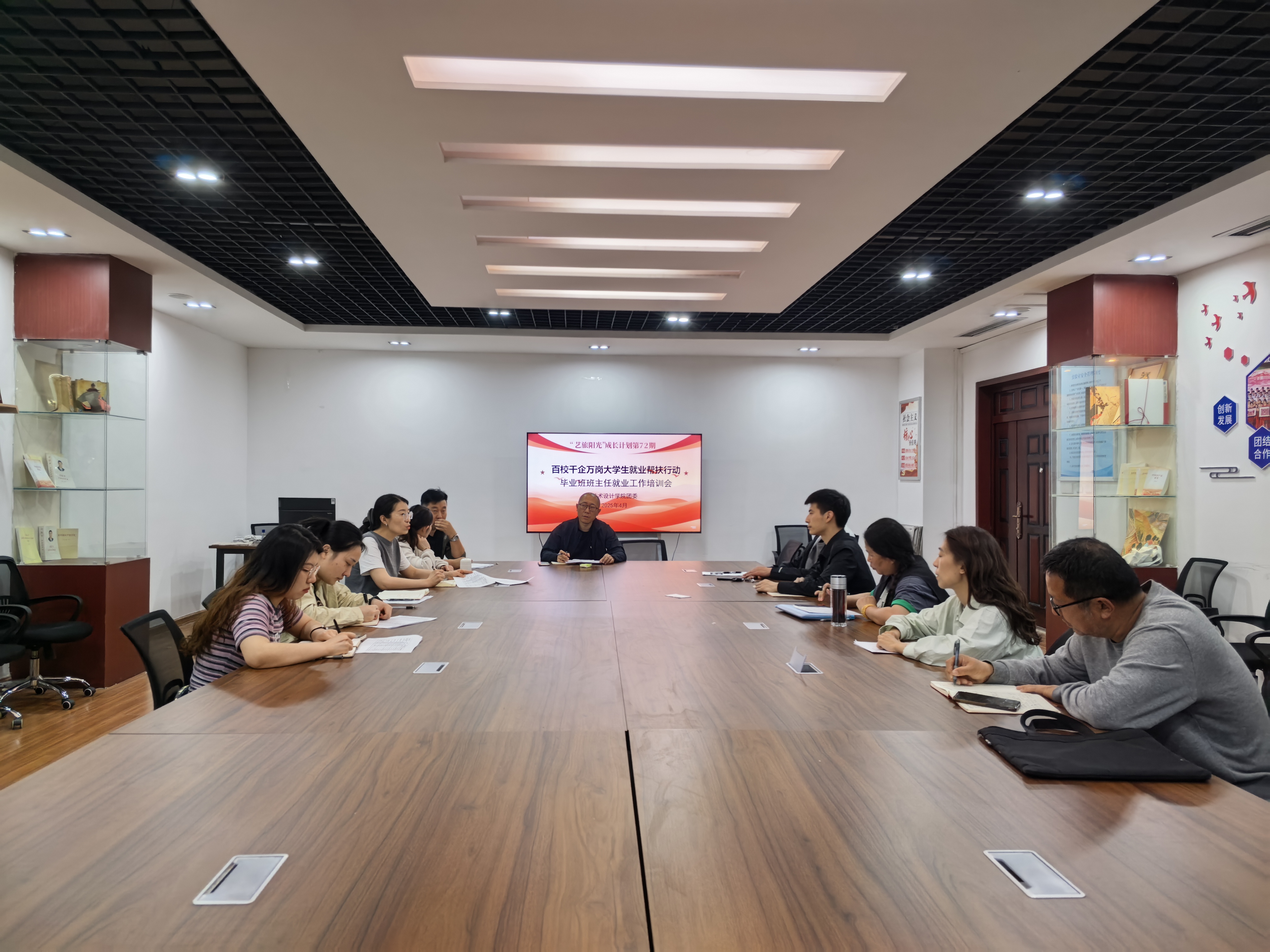 为提升毕业班班主任就业指导能力和服务质量,助力2025届毕业生高质量就业,落实百校千企万岗就业帮扶行动精神,4月29日,艺术设计学院举办毕业班班主任就业工作培训会。学院党总支书记王少勇、副书记邱伟伟出席会议,2025届全体毕业班班主任参会。