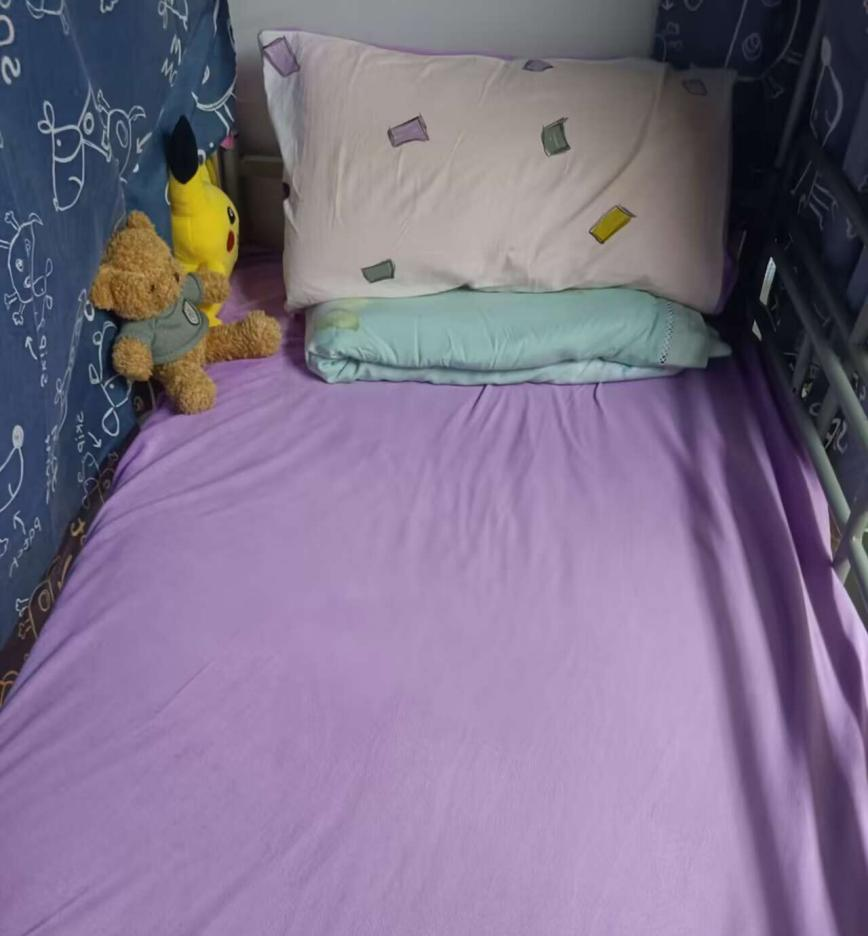 2、床上用品的摆放应统一、整齐、规范。床面不堆放杂物,床沿不乱挂衣物、书包等。