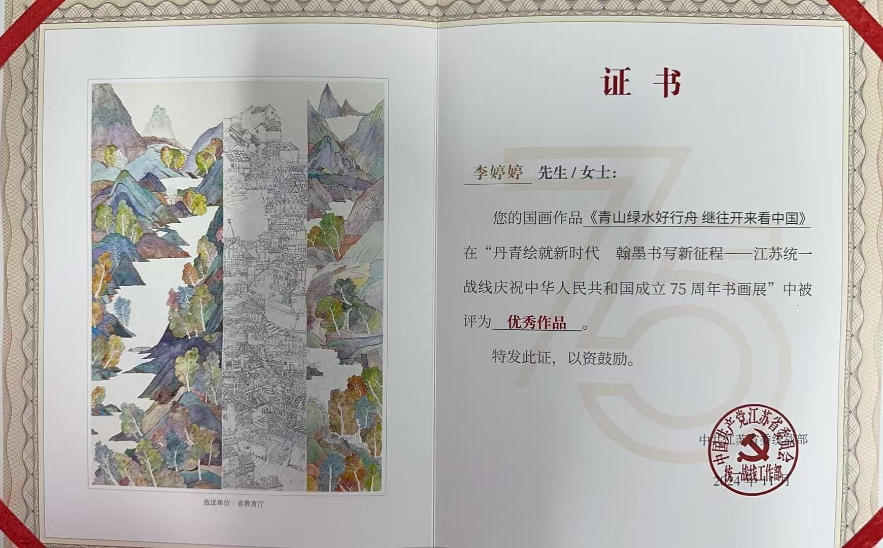 李婷婷老师“丹青绘就新时代翰墨书写新征程一江苏统一战线庆祝中华人民共和国成立75周年书画展”优秀作品