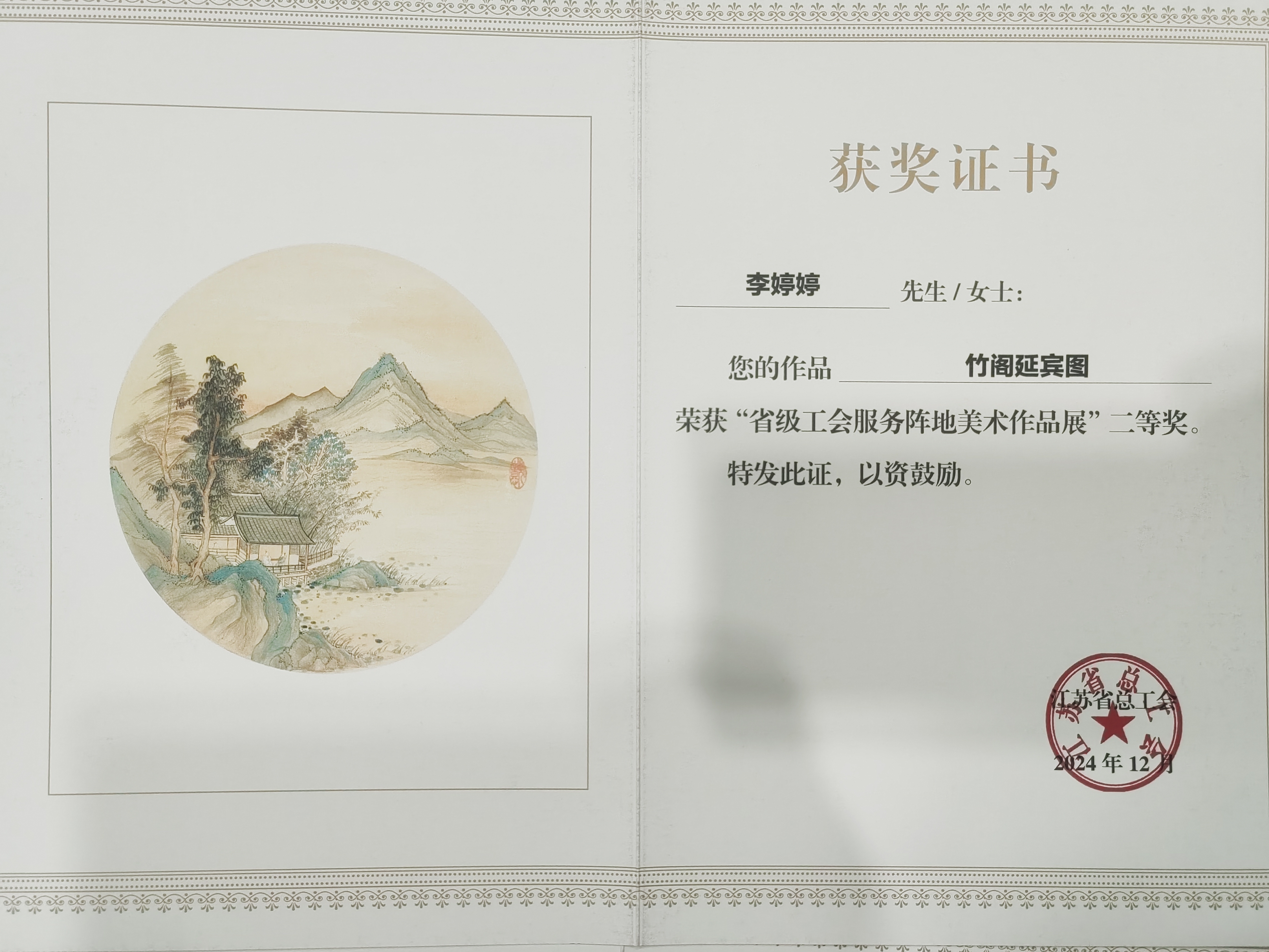 李婷婷老师“省级工会服务阵地美术作品展”二等奖