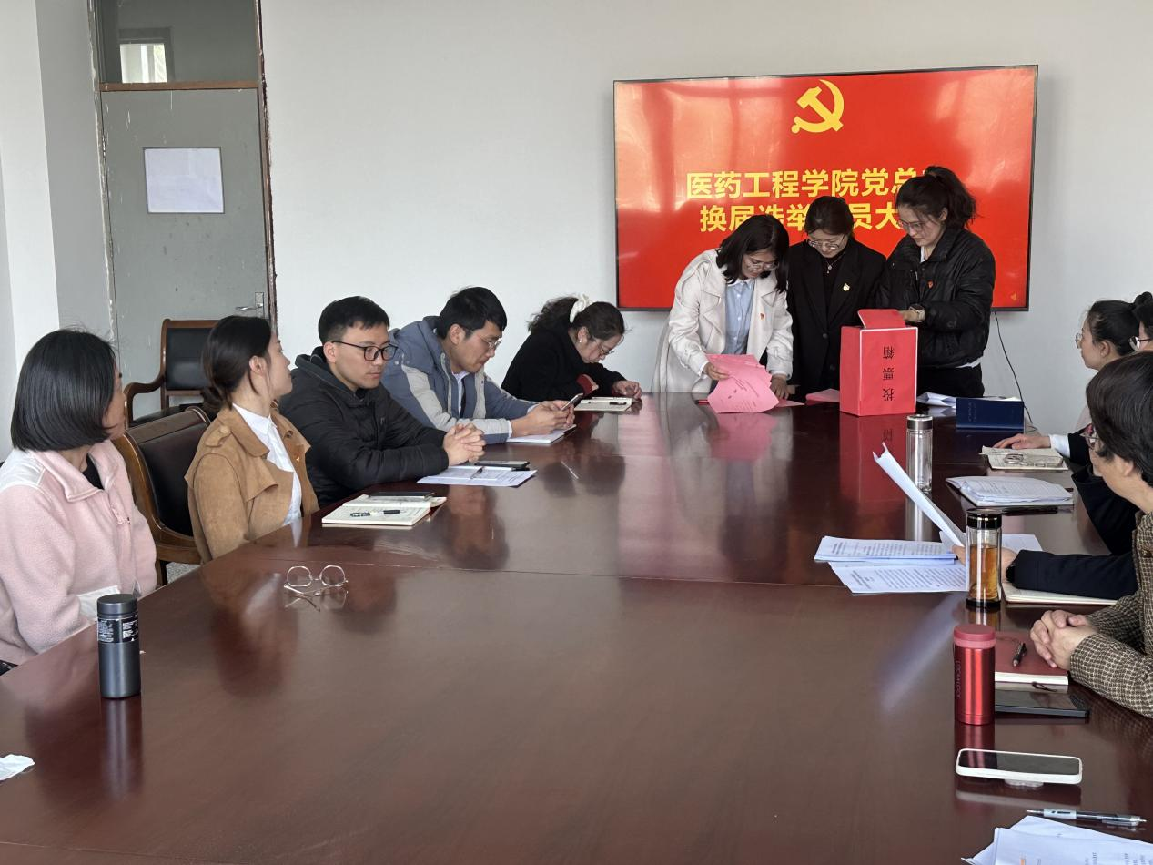 4 月 1 日,医药工程学院党总支换届选举党员大会在学院会议室隆重召开。学院全体党员齐聚一堂,共商发展大计,大会由党总支书记吴波主持。