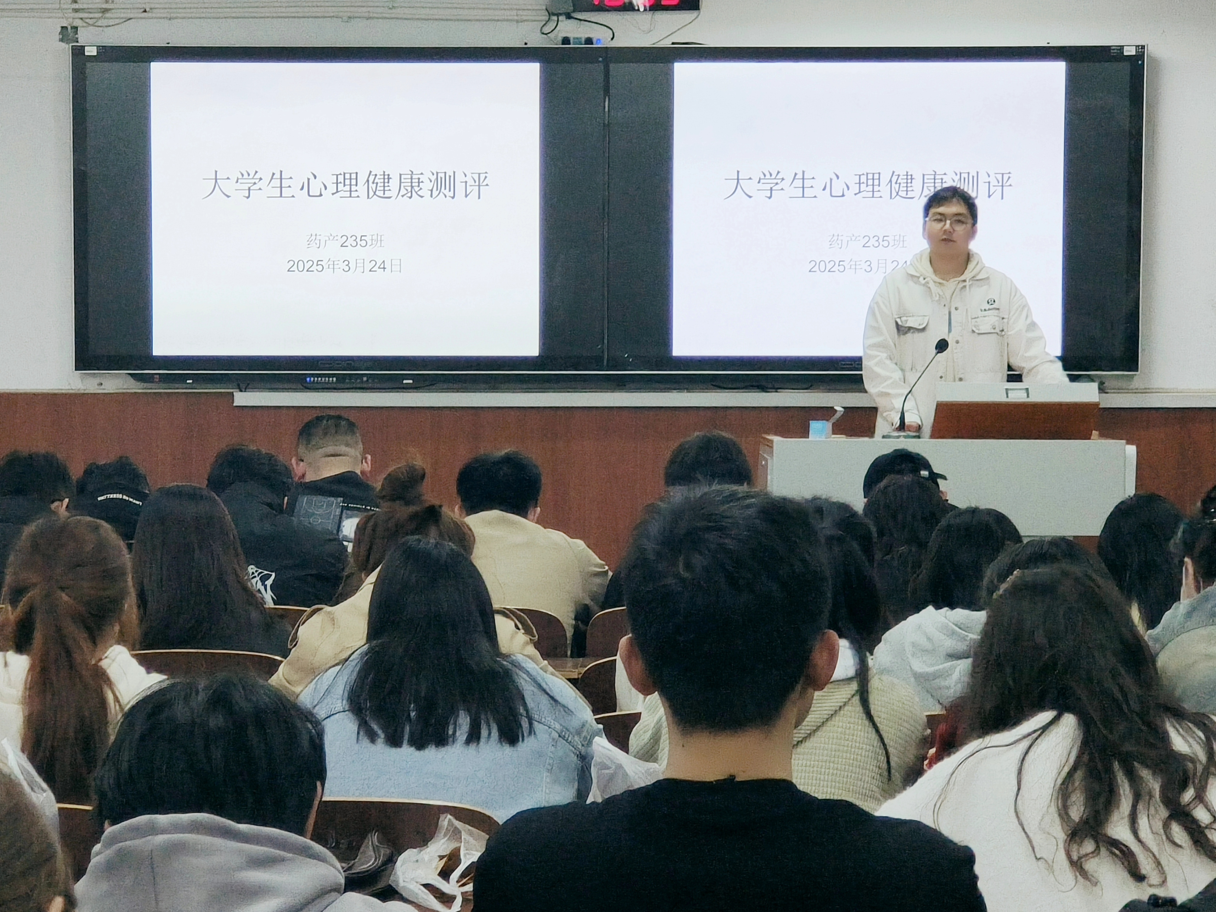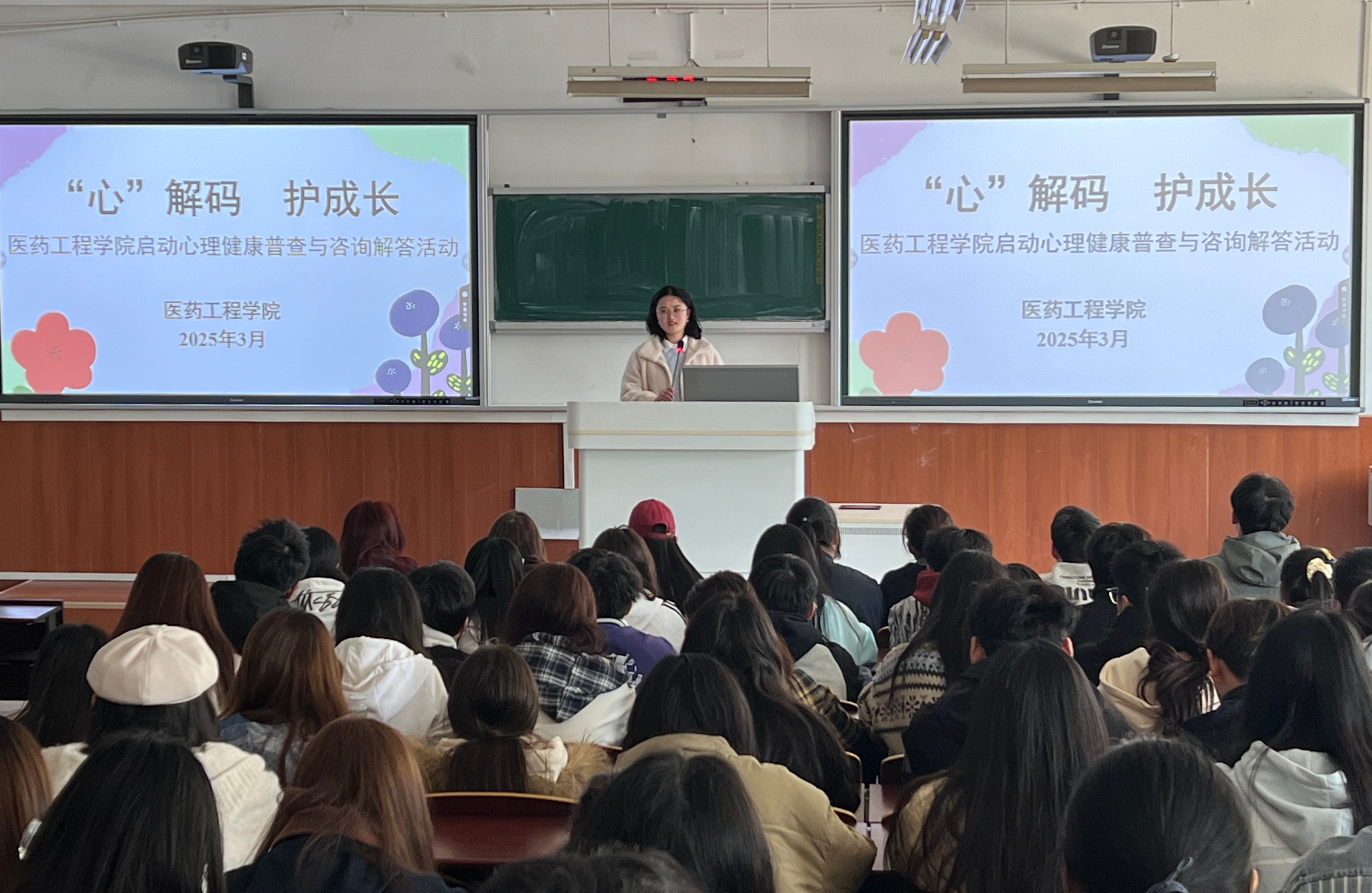 为进一步加强大学生心理健康教育工作,帮助学生提升心理调适能力,全面了解掌握老生心理健康状况,医药工程学院于2025年3月24日上午,在博远楼126教室启动“‘心’解码 护成长”心理健康普查与咨询解答活动。学院辅导员、教师代表、班主任代表、学生干部代表、心理委员、23级学生代表共同参与活动。