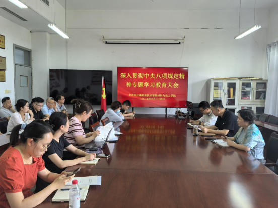 为进一步做好深入贯彻中央八项规定精神学习教育,推动中央八项规定精神在学院落地生根、走深走实,6月24日下午,材料与化工学院党总支召开深入贯彻中央八项规定精神学习教育专题教育大会,全体党员老师参加。